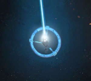 The Angel's Pencil was a human colony ship designated to head for We Made It. It was a type of ramscoop powered ship that had been constructed to safely carry living passengers without blasting them with radiation from the drive. At the time the Angel's Pencil's inception it was at the cutting edge of human photon drive technology. The ship was given its name because its long cylindrical body, attached to a circling halo, resembled a mechanical pencil. It was launched from Earth in approximately 2355 C.E. and crewed by five persons: Abel, Sue Bhang, Dr. Jim Davis, Ann Harrison and Steve Weaver.[1]