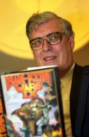 Hal Colebatch with copy of Man-Kzin Wars IX